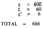 A number of people have asked the following question: On what is all of this based? Beyond the historical fact that the ancients used letters to represent numerals, where do you get the proof that God had anything to do with the assignment of number values to the Hebrew and Greek alphabets---and then to the individual words of the Bible text? Where is the verse in the Bible that tells us there exists any such phenomenon as theomatics? These questions are certainly valid and they demand an answer.In Theomatics II, these questions are discussed and analyzed extensively. Two things are worth mentioning here. The entire numerical system can be found in some of the earliest Greek manuscripts for the New Testament. In the papyrus documents, the many numbers mentioned in the text are actually given with these numerical values. For example, the well known number 666 from the book of Revelation (13:18), appears as the following Greek letters.